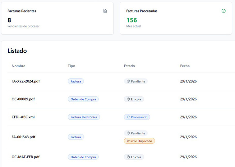 - Para equipos de Contabilidad, Finanzas y Almacén, que procesan volúmenes altos de facturas